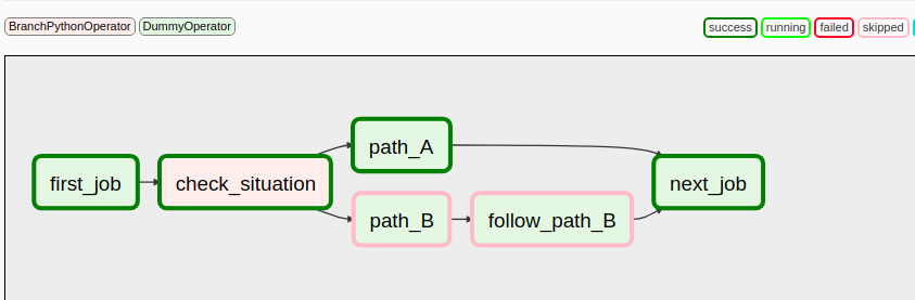 from datetime import datetime, timedelta from textwrap import dedent from airflow import DAG from airflow.operators.bash import BashOperator with DAG( dag_id='log_test_tg', default_args={ 'depends_on_past':False, 'email':['woodywork1505@gmail.com'], 'email_on_failure': False, 'retries':1, 'retry_delay':timedelta(minutes=5), }, description='A simple DAG', schedule_interval="@once", start_date=datetime(2022, 5, 23), catchup=False, tags=['gt'], ) as dag: t1 = BashOperator( task_id='test1_print_date', bash_command='date', ) t2 = BashOperator( task_id='test2_sleep', depends_on_past=False, bash_command='sleep 5', retries=3, ) t1.doc_md = dedent( ''' sample test ''' ) dag.doc_md = __doc__ dag.doc_md = """ this is a doc placed """ templated_command = 'echo "hello"' t3 = BashOperator( task_id='templated', depends_on_past=False, bash_command=templated_command, ) t4 = BashOperator( task_id='test4_hello', bash_command='echo "bye"' ) t1 >> [t2, t3] t3 >> t4DAG를 실행하기